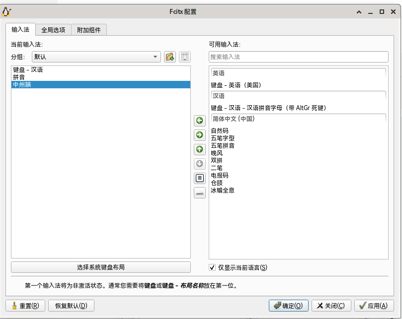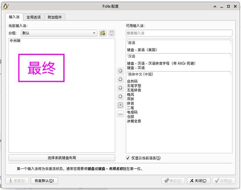 输入法框架,安装前建议卸载 Fcitx