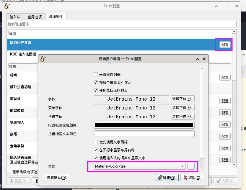Debian12 为 fcitc5 输入法框架提供了一些不错的界面主题,这里使用了 fcitx5-material-color 包